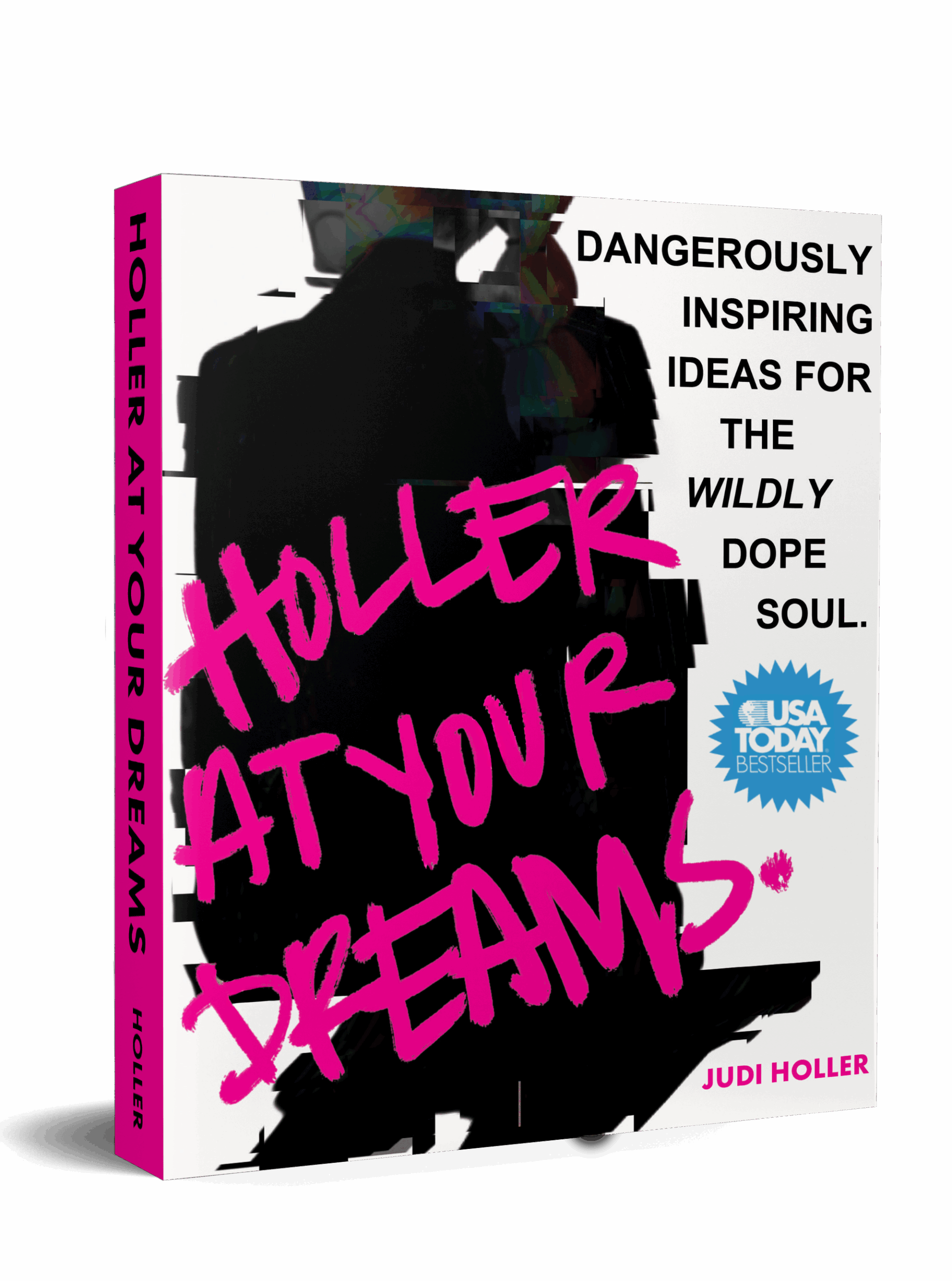She’s the USA TODAY bestselling author of Holler at Your Dreams, a genre-bending guide for wildly dope souls ready to wake up their magic, and Fear Is My Homeboy, an instant Amazon bestseller that empowers readers to fear less and act braver.