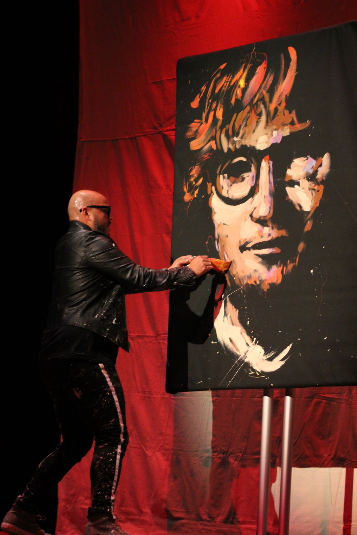 Hundreds of thousands have witnessed Garibaldi paint live by transforming a blank black canvas into pop art icons through his “Rhythm and Hue” shows. Garibaldi has performed for Fortune 500 companies including AT&T, Intel and Disney. He has also been featured at charity events for Playboy, NBA, and celebrities Snoop Dog, Santana, Tommy Lee, Dave Navarro and Blue Man Group.