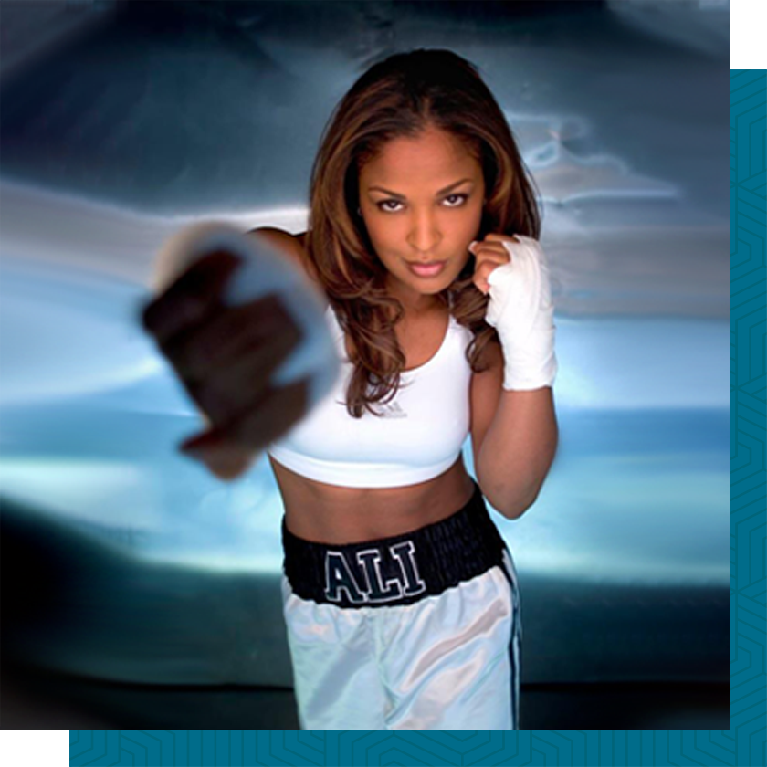 The daughter of late beloved global icon and humanitarian, Muhammad Ali, she is a four-time undefeated boxing world champion, whose stellar record includes 24 wins (21 of which were “knockouts”) and zero losses. Laila is heralded as the most successful female in the history of women’s boxing.