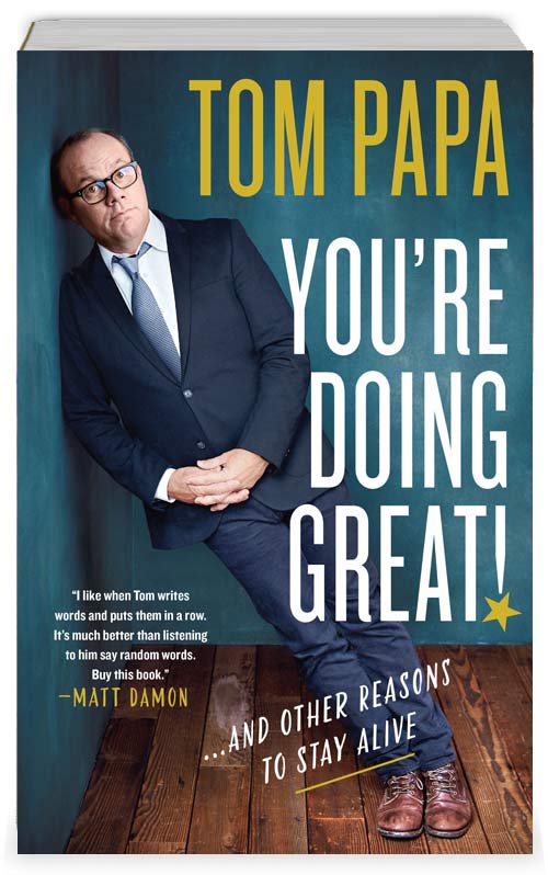 On May 12, Tom released his second book, You’re Doing Great!: And Other Reasons To Stay Alive, a collection of essays on how people really live in modern America and what’s truly good and wonderful about our lives. Tom’s first book, Your Dad Stole My Rake: And Other Family Dilemmas, was released on June 5, 2018 from St Martin’s Press, making “Summer Must Read” lists from Parade Magazine to The New York Post. The comedic book takes a hilarious look at the host of characters in our families with bizarre, inescapable behavior.